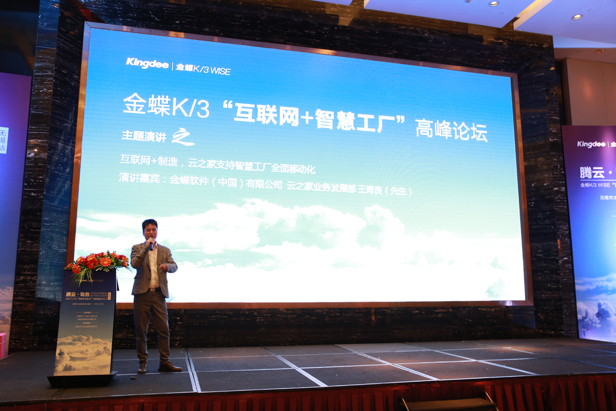 2016年10月20日,由金蝶国际软件集团与无锡市赛格科技有限公司联合主办、无锡市中小企业服务机构协会、宜兴市科学技术局、宜兴市经济和信息化委员会协办的“金蝶K/3 WISE 互联网+智慧工厂”最佳实践高峰论坛无锡站在无锡市太湖皇冠假日酒店成功举办。