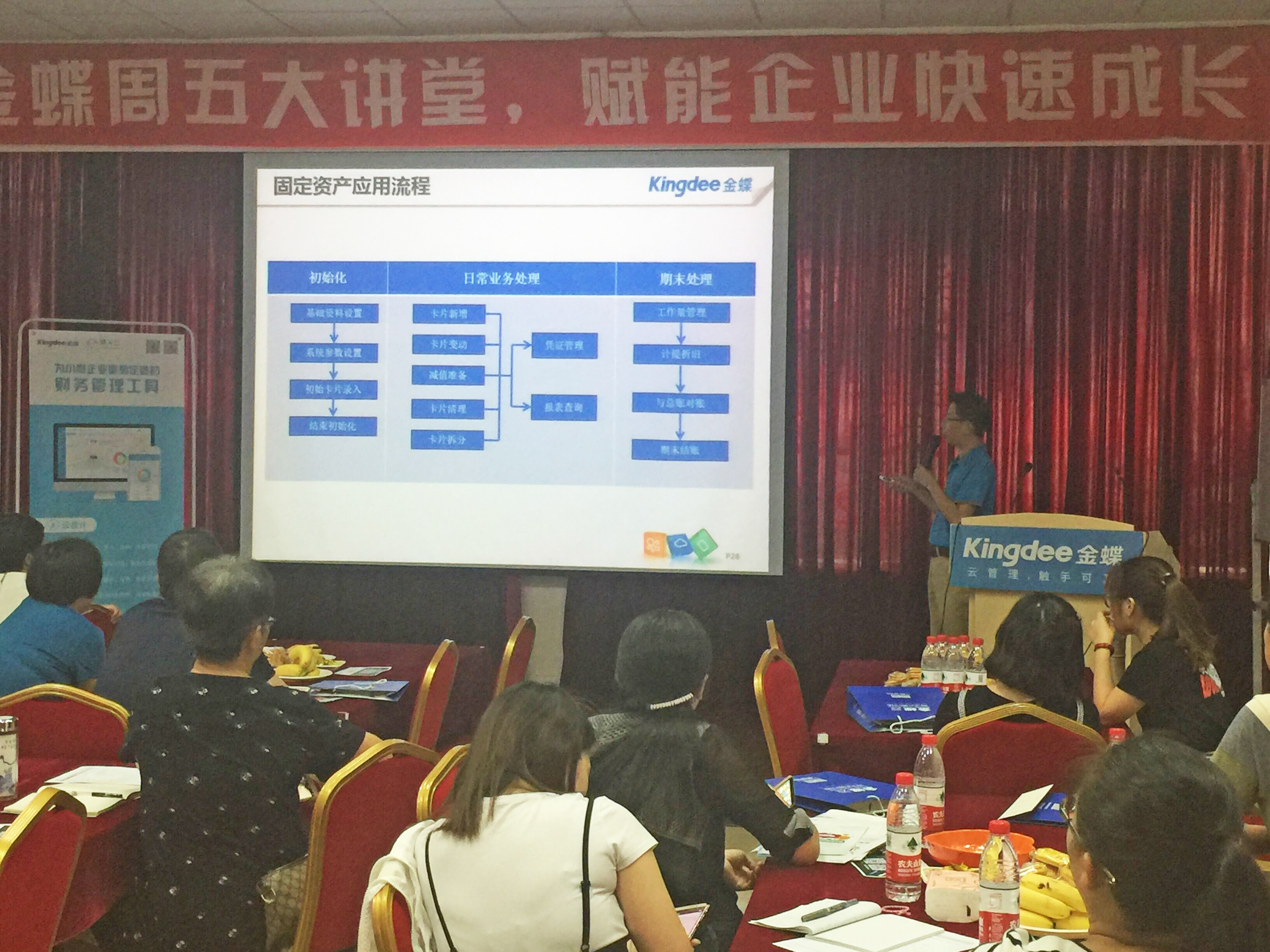 本次培训活动主要给大家讲解的是金蝶KIS专业版(固定资产应用)以及小微企业一站式云服务平台─精斗云的产品知识,重点讲解了客户使用过程中经常发生的问题、卡片类别的管理、每个模块在实际工作中的价值、云产品的价值、精斗云产品案例分析等。