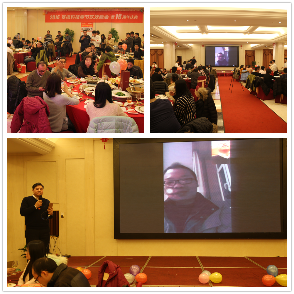 2016年2月1日,无锡市赛格科技有限公司2016迎春晚会暨18周年庆典在高大上的无锡白金汉爵大酒店隆重举行,来自无锡总部和无锡公司及宜兴公司的近60名员工及部分伙伴欢聚一堂,共迎新春。